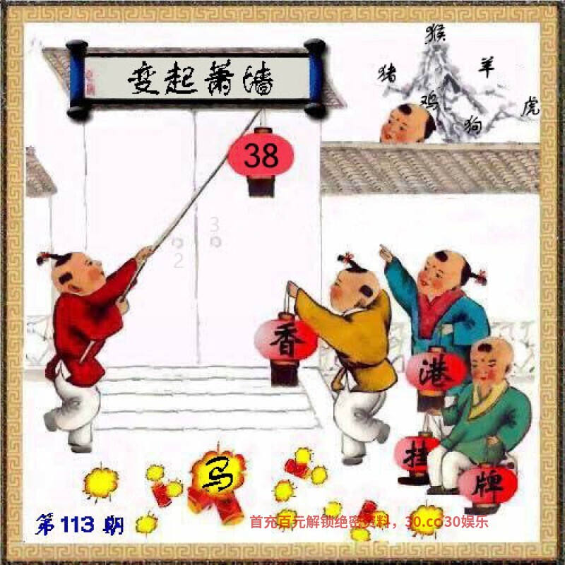 113期正版彩图挂:38爆:马 挂牌成语:变起萧墙 挂牌出肖:猪鸡狗猴羊虎